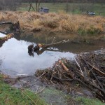 Davon konnten wir uns gestern bei unserem Kontrollgang im Projektgebiet Lohrhaupten selbst überzeugen. Nachdem die umfangreiche Renaturierung seit einigen Monaten abgeschlossen ist, finden sich immer mehr Biber-spuren, etliche neue Dämme und einige Biberpfade im Grünland, die der Biber immer wieder nutzt, um zu seinen Nahrungsflächen zu kommen. Gerade jetzt sind die Biber sehr aktiv, das sie im Winter vor allem auf Baumrinden angewiesen sind. Aber sie gestalten auch ihren Lebensraum: Im Lohrbach selbst ist schon ein kleiner Bibersee entstanden.