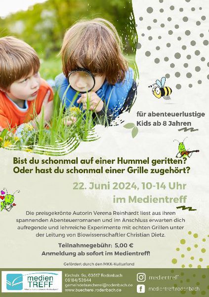 Insekten, Frösche und Kröte, Kaulquappen, Singvögel und Nachwuchs, Eidechsen, Kaninchen und Feldhasen. Wir besuchen die Rodenbacher Weißstörche und keschern im Beinholzsee nach Wasserorganismen.