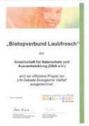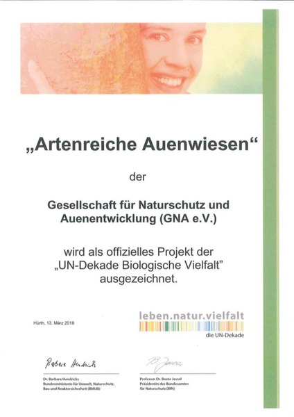 Das Projekt „Artenreiche Wiesen“ und der „Biotopverbund Laubfrosch“ wurden 2018 als offizielle Projekte der UN-Dekade Biologische Vielfalt gewürdigt.